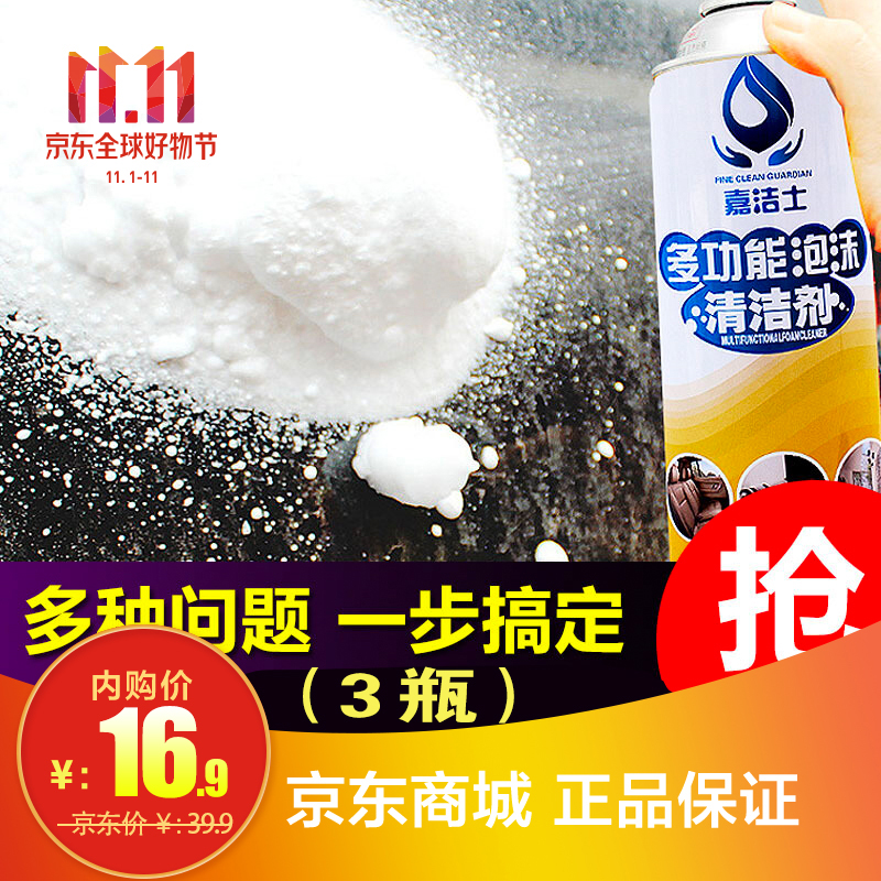16.9得3瓶泡沫清洁剂,汽车内饰清洗剂,家居强力清洁剂,室内布艺沙发地毯清洁,通通都能搞定,快速起效,迅速持久,一喷一抹,轻松搞定!