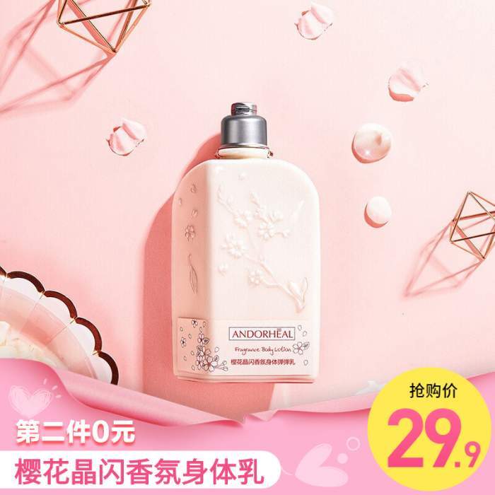 【 拍2件 】【李佳琦力荐】粉嫩瓶身,樱花香氛!Q弹不粘腻质地,一抹滋润保湿,还添加了天然云母微粒,涂完肌肤像打了高光,靓白细嫩~让你重拾少女肌!