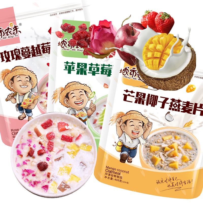 【三袋共1200克】【玫瑰蔓越莓,苹果草莓,芒果椰子口味各一袋】精选上好燕麦,富含40%水果麦片,不含反式脂肪酸,营养均衡,方便即食,给你不一样的味蕾体验。