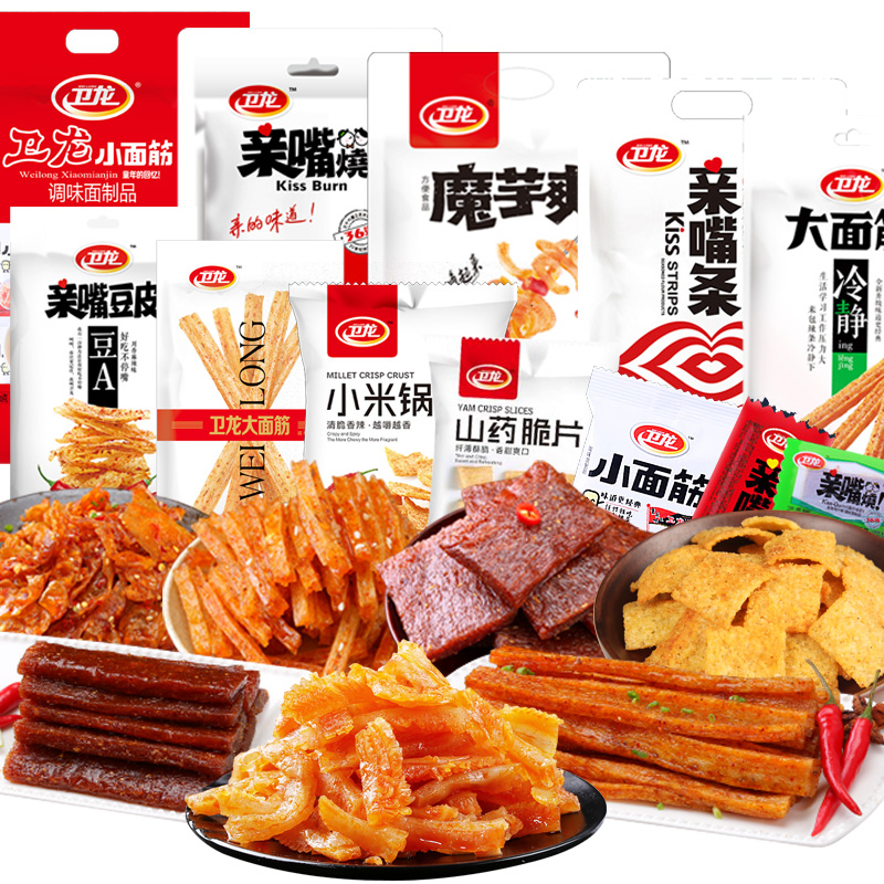 【天猫品质】超值,卫龙组合一整箱装【远销国外】,精选植物油和优质面粉大豆制作而成,鲜爽香辣,无防腐剂,童年麻辣零食,超大分量,回味儿时的味道,越嚼越香!吃货们千万别错过【赠运费险】