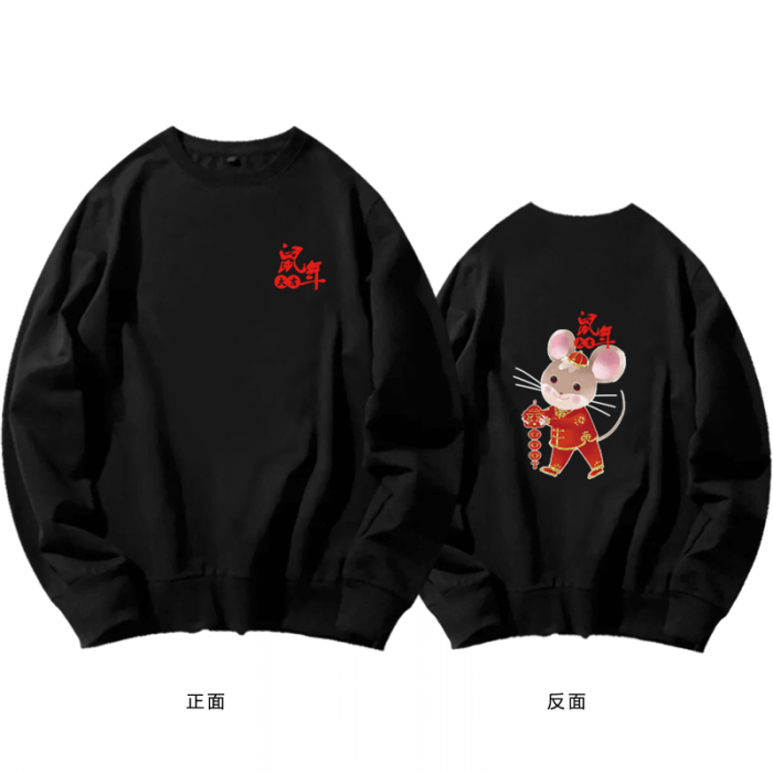 鼠年本命年大吉男女套头长袖加绒连帽卫衣,时尚美观,好看清新。
