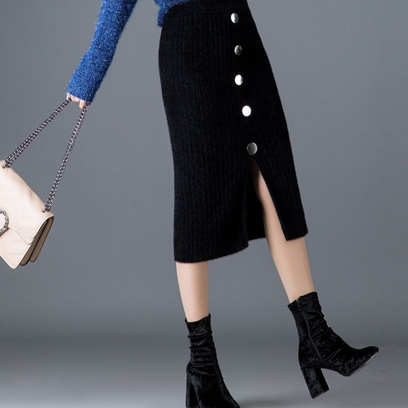 2019针织半身裙中长款,立体剪裁,纯色针织包臀,时尚舒适,迷人显瘦,弹性好,可塑性强,属于你的单品哦!