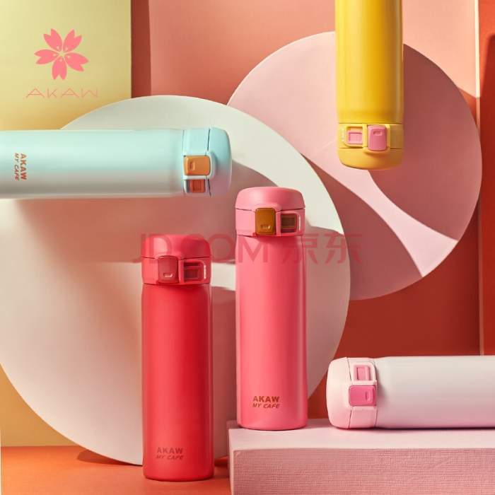 日本AKAW爱家屋保温杯女304不锈钢便携网红ins创意韩版泡茶杯水杯子学生创意可爱日系随手杯 草莓粉-480ml马卡龙保温杯