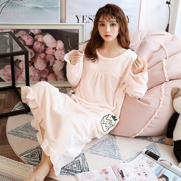 珊瑚绒睡裙女秋冬季加绒加厚超长款甜美学生浴袍宽松可爱兔儿法兰绒家居服冬款保暖家居服可外穿