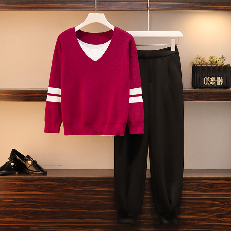 2019年新款大码女秋冬季显瘦胖妹妹心机两件套装洋气减龄穿搭显高,材质舒适亲肤,尽显女神范!