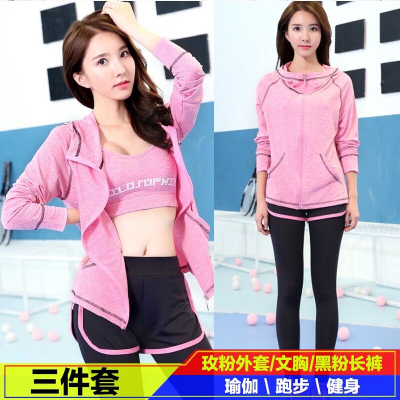 女士健身运动套装瑜伽服三件套 健身必备!【女士健身服运动套装】 舒适透气,超强速干,不掉色,内置文胸衬修身显瘦,防抖防震,让运动,变得更加性感!