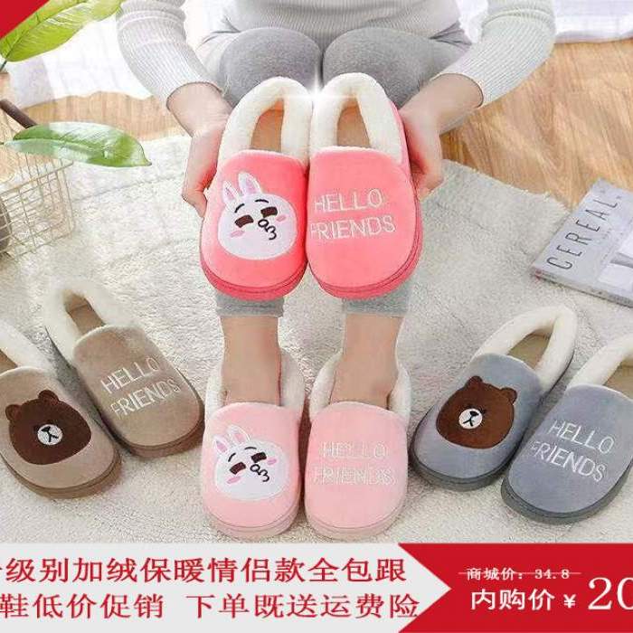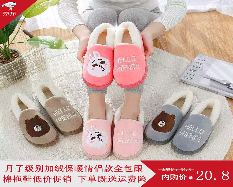 HQ pattein 棉拖鞋包跟外穿情侣家居室内防滑男女款棉鞋拖鞋男可爱加绒棉拖鞋厚底平跟秋冬季 平跟