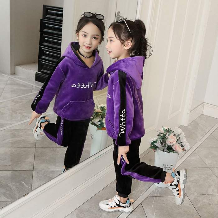 童装男女金丝绒卫衣套装 优选金丝绒面料,细腻丝滑,个性甜美字母,舒适连帽领口柔软舒适,易穿脱,随性舒适的运动风格,穿她的宝宝都变美了,赠送运费险!
